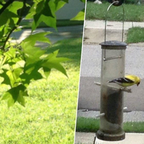 light, shadows, and a goldfinch at one of our feeders